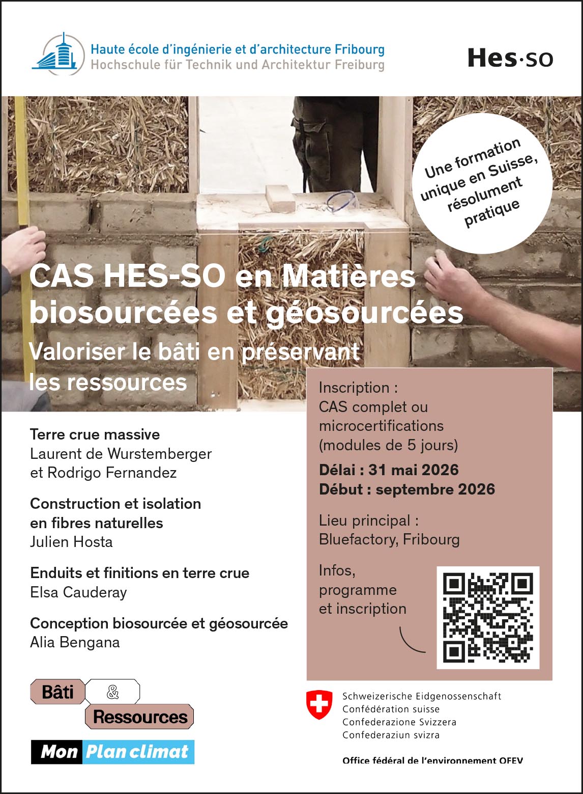 Cette formation en matières biosourcées et géosourcées s’adresse à des professionnel·les des domaines de l’architecture et de la construction intéressé·es à se former dans l’utilisation concrète des matériaux à faible empreinte carbone à travers la pratique, en réalisant des prototypes à l’échelle 1 :1.